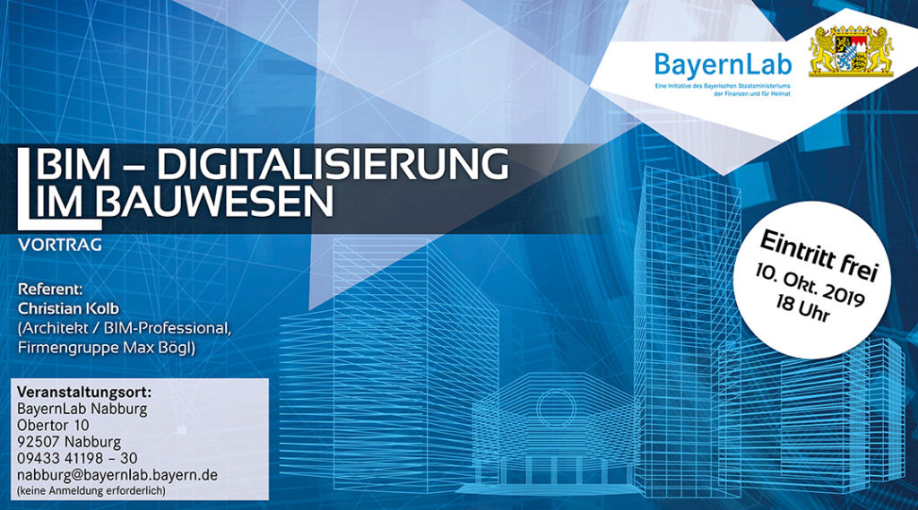 Sie wollen mehr über den Einzug der Digitalisierung in die Baubranche erfahren, dann besuchen Sie den kostenfreien Vortrag am 10. Oktober 2019 um 18 Uhr im